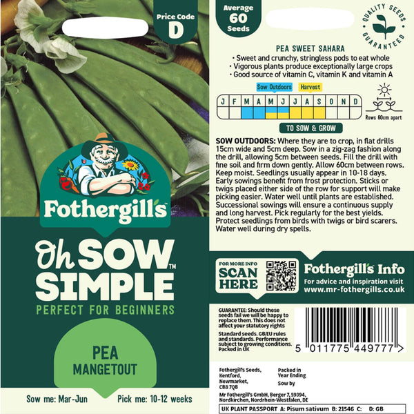 Grow fresh and delicious Pea Mangetout in your garden! These stringless pods have a sweet flavor and a crisp, succulent texture. With vigorous plants and high yields, this variety is perfect for any garden. Enjoy the full sun and reap the benefits of this easy to grow seed.